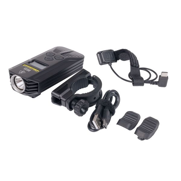Nitecore BR35 er en alsidig cykellygte der er lige velegnet til by- og terræncykling. Lampens to CREE XM-L2 dioder giver et lysoutput på hele 1800 lumen og en rækkevidde på 170 meter, hvilket giver brugeren masser af lys til enhver situation. Med den medfølgende fjernbetjening kan du nemt skifte mellem nær- og fjernlys uden at slippe styret.