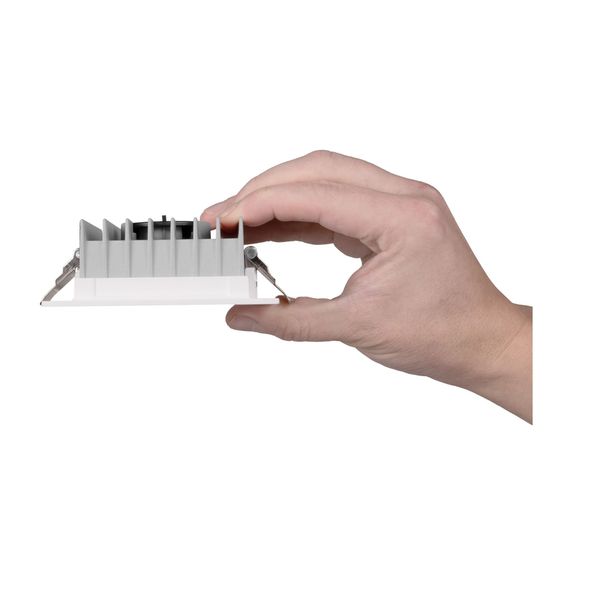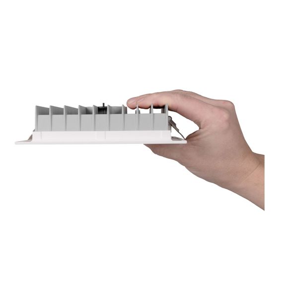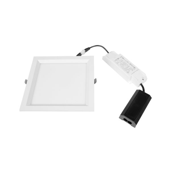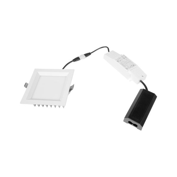 Firkantet downlight med aluminiumsramme og blændfrit design. Giver et bredt lysbillede og høj farvegengivelse i både tørre og våde rum, samt inde og ude. Justerbar farvetemperatur, fås med en effekt på enten 12W / 960 lm eller 30W / 2400 lm. Kapslingsklasse IP44.