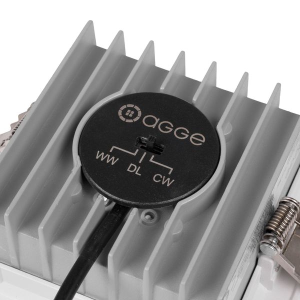 AGGE Square Flood Antiglare White er et firkantet indbygningsspot med blændfrit design, fokuseret lysbillede og høj farvegengivelse. Armaturet har et robust aluminiumskabinet af høj kvalitet og er beregnet til både tørre rum og vådrum. Selve lyskilden er placeret dybt i kabinettet, hvilket minimerer lysspredning til siderne og skaber et blødere og mere fokuseret lysbillede end normalt. Ved installationen kan du nemt vælge mellem tre farvetemperaturer: varm hvid (3000 K), neutral hvid (4000 K) eller kold hvid (5000 K). Derudover er armaturet dæmpbart med Triac-lysdæmper. Takket være den justerbare farvetemperatur og lysdæmperfunktion kan du skabe en unik atmosfære i hvert rum, samtidig med at du bevarer et ensartet udtryk i hele hjemmets belysning.
