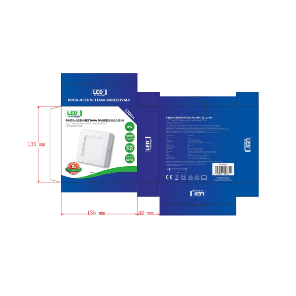 Led Energie Kvadrat loftlampe er en letmonteret indfalds lampe til tørre og fugtige rum i hjemmet, som badeværelset eller gangen. Lampen er stilren og enkel, så den egner sig godt til mange former for interiør. Lampen er tilgængelig i to forskellige størrelser og wattstyrker, så du kan vælge den bedst passende version fra produkt alternativerne. Specificeret lyseffekt 370 eller 900 lumen, farvetemperatur 3500 Kelvin.