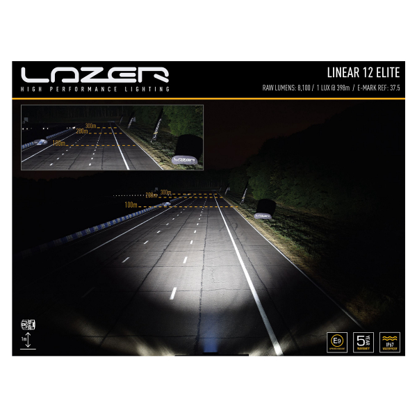 Lazer Linear 12 Elite er en slim desginet og effektiv lysrampe. Takket være den unikke konstruktion passer denne også til mindre biler og trange rum. Rampen er e-mærket og dermed godkendt i trafikken. Lysbilledet er en præcis og heldækkende kombinations lysbillede, med andre ord findes der er et kraftig spot med lang rækkevidde i lysets midtpunkt, mens rampen giver rigeligt med lys på siderne. Meget god lysrampe til både vejtrafik og motorsport!