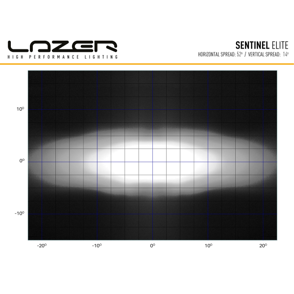 Lazer Sentinel Elite er den kraftigste model i Lazer's helt nye serie af runde fjernlys. Den nye Sentinel-serie kombinerer elegant design, førsteklasses ydeevne og den velkendte Lazer-kvalitet. Sentinel Elite er udstyret med 32 kraftige dioder, der ifølge producenten giver et lysudbytte på 15.232 lumen. Dette lysudbytte kombineret med de spejlede vakuummetalliserede reflektorer skaber et behageligt lysmønster, der oplyser omgivelserne, både ved vejkanten og med en fin rækkevidde på 742 meter @ 1 lux ifølge producenten. Ved at kombinere med 2 stk. monteret enten side om side eller oven på hinanden kan du forme lysstrålen for at maksimere rækkevidden eller sprede lyset mere lateralt. På grund af sin størrelse er Lazer Sentinel Elite særligt velegnet til større køretøjer.