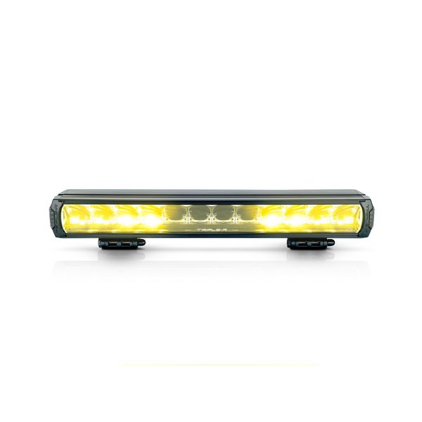 Højeffektiv fjernlysrampe udstyret med hvidt og gult lys. Fjernlyset har også et hvidt og orange parkeringslys. Angivet lysstrøm maks. 21 388 lm og maks. rækkevidde 825 m @1lux.