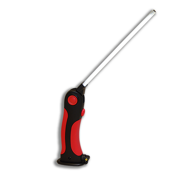 Genopladelig, batteridreven LED-arbejdslampe med meget bredt lysbillede. 180° roterbart lampehovede og magnet i bunden. 300 lm lysflow.