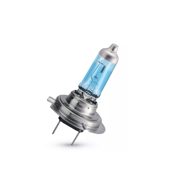 Effektiv halogenlampe med H7-sokkel, erstatter den traditionelle halogenlampe med et hvidere lys. Farvetemperatur 4200K, effekt 55W, driftsspænding 12V.