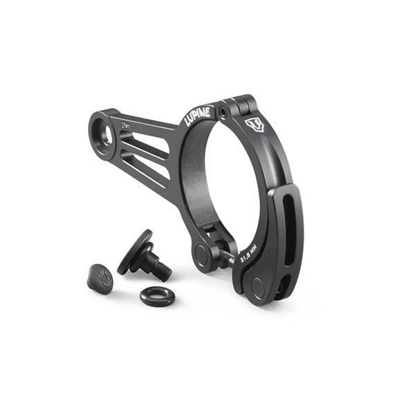 Hurtigbeslag til montering af Lupine Betty R på cyklens styr. Tager ikke meget plads på styret da diameteren på beslaget er 8 mm. Med det medfølgende Peppi V5-beslag kan Bluetooth-fjernbetjeningen monteres på styret. Det gør det muligt at kontrollere lampen uden at slippe styret. Beslaget er fremstillet i aluminium og skruerne i rustfrit stål.