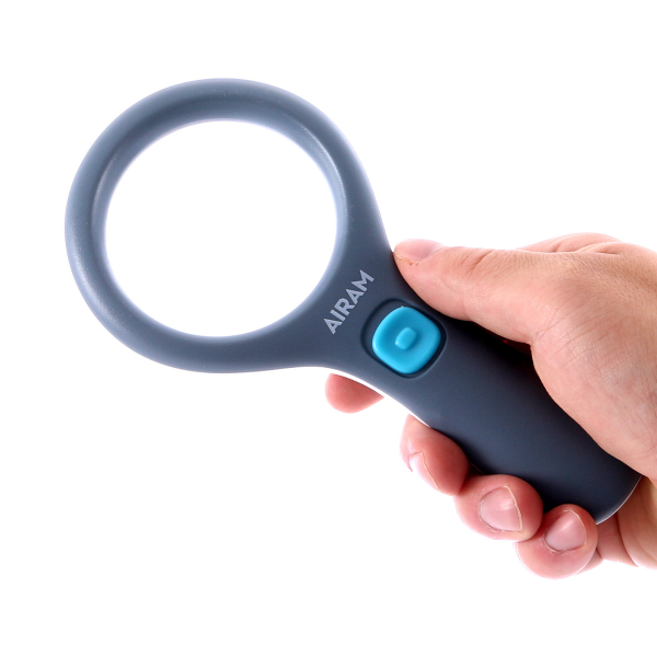 Airam Magnifier er et forstørringsglas med LED-lys. Rundt om glasset sidder tre LED-lygter, som oplyser overfladen som skal undersøges fra forskellige sider. Et godt hjælpemiddel til nøje undersøgelse af små overfalder.