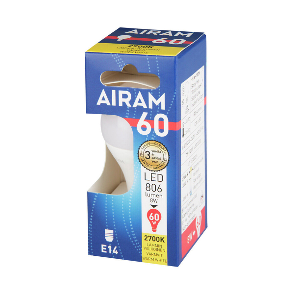 Energieffektiv LED-lampe med E14 sokkel. Spreder og fordeler lyset jævnt i hele rummet, hvilket gør den velegnet til åbne lamper. Tre års (36 måneder) garanti!