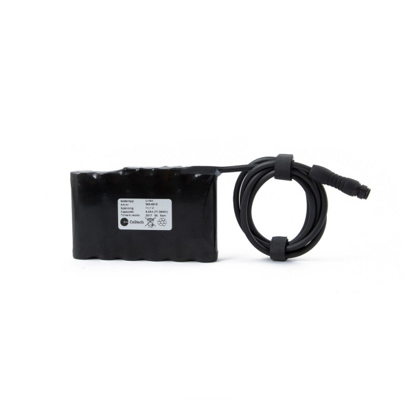 Specifikation for det mellemstore batteri (M): 10,8 V / 7 Ah / 75 Wh - Vægt 320 gram, kabel længde 105 cm.