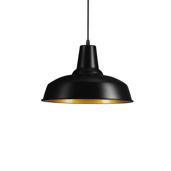 Elegant pendel i skandinavisk stil, som udgør et moderne og diskret supplement til indretningen. Fungerer med udskiftelig E27-pære (medfølger ikke), fås i sort/guld eller hvid/sølv.