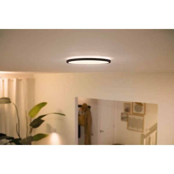 Wiz SuperSlim 14W er en stilfuld og smart loftslampe, der kan styres via Wiz-mobilappen, og med den justerbare farvetemperatur på 2700 - 6500 K kan du skabe passende belysning til forskellige behov. Lampen leveres med færdige lysindstillinger, der gør hverdagen lettere, men farvetemperaturen kan naturligvis justeres, og effekten kan også dæmpes trinløst ved hjælp af Wiz-mobilappen. SuperSlim-lampen er fantastisk til at belyse et større rum, og takket være det slanke design er den også velegnet til rum med lavt loft. SuperSlim giver et jævnt lysbillede hele vejen rundt, hvilket er fantastisk til både generel belysning og stemningsbelysning. Findes i sort eller hvid. Oplyst lysflow med medfølgende lampe er på 1300 lumen, farvetemperatur 2700 - 6500 Kelvin.