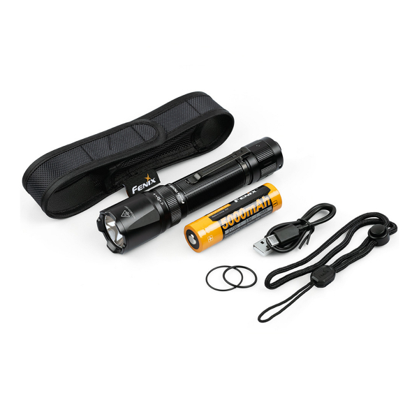 TK20R er en USB-C genopladelig lommelygte, der er velegnet til taktisk brug, brug i barske vejrforhold, i marken og på jagt. Lygten leveres med: fenix 5000 mAh Li-ion-batteri, USB-C-opladerkabel, bæltehylster, håndledsrem, O-ringforsegling og brugermanual.