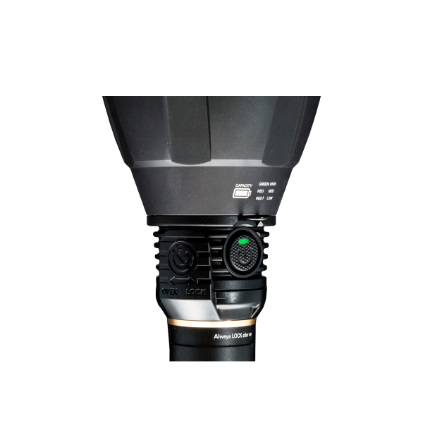 Meget effektiv lommelygte med et bredt lysmønster, velegnet til både søgning og almindelig brug! Angivet lysflow på 11.600 lm, maksimal rækkevidde 525 m. Genopladelig, fungerer også med tre C-batterier!