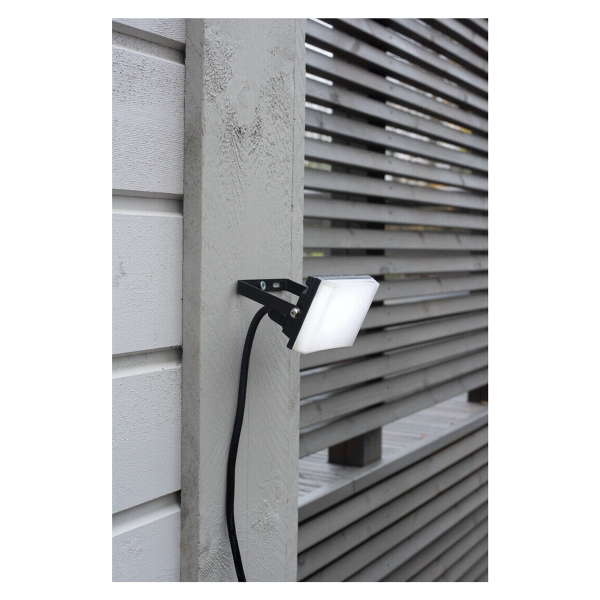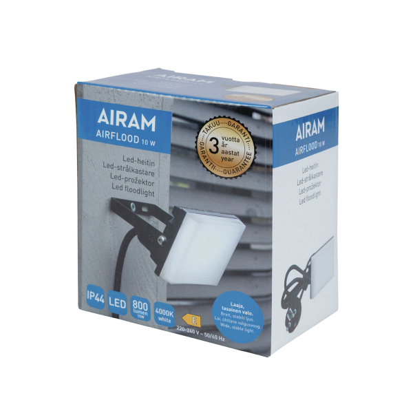 Airam Airflood er en moderne og let struktureret LED-spotlight, der er velegnet til belysning af gårdspladser, bygninger, gangarealer og endda parkeringspladser. Med sit kantløse design passer projektøren elegant til facaden på forskellige bygninger, og frontpanelet giver et behageligt jævnt lys over hele overfladen. Takket være den justerbare lysvinkel kan lyset nemt rettes mod det ønskede sted. Alle lamper i Airflood-serien er støv- og vandtætte i henhold til IP44, hvilket betyder, at de kan modstå forskellige vejrforhold og frost og er velegnede til brug hele året rundt. Et gummikabel af høj kvalitet med stik gør tilslutningen let. Tre års garanti!