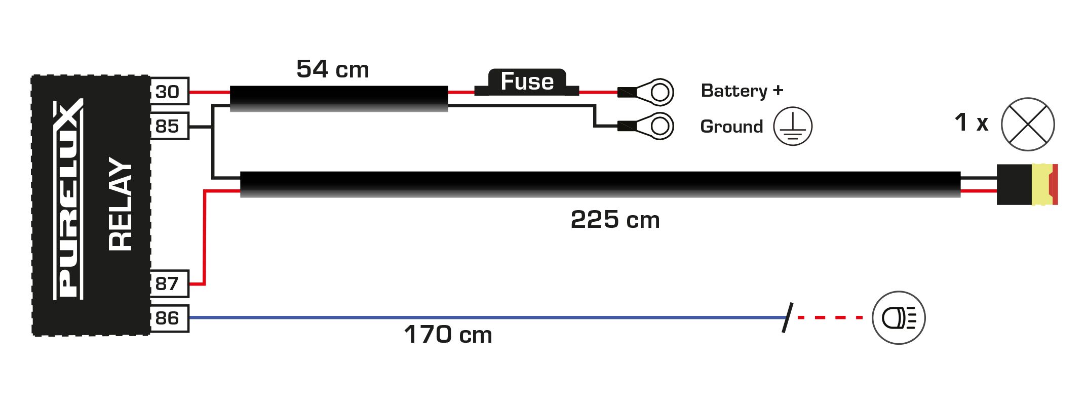 Purelux relækabelsæt til installation af fjernlys med Superseal-stik. Egnet til f.eks. Lazer's Triple-R og Linear modeller! 1 udgang, maksimal effekt 168W. Velegnet til 12V-spænding.