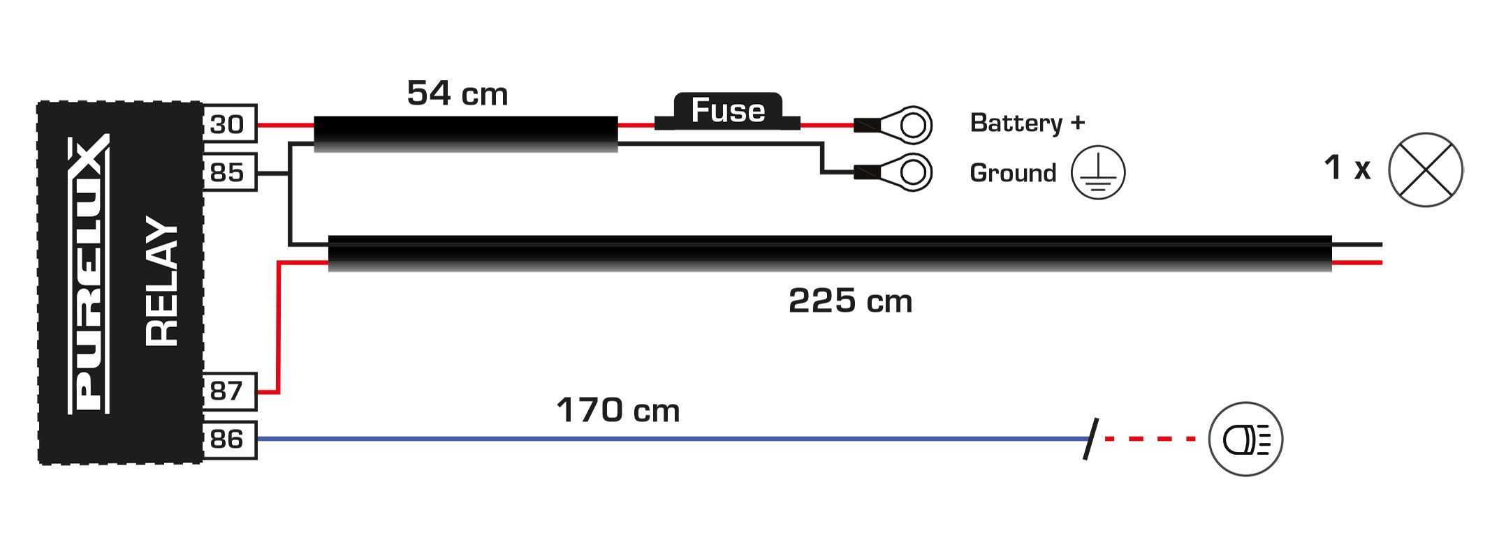 Purelux HD relæ kabelsættet er en enkel løsning til at installere et fjernlys! Dette relæsæt er designet til at håndtere selv de mest kraftfulde fjernlys, op til en belastning på 5000W, som mange andre relæer på markedet simpelthen ikke kan klare. Robuste Abico-stik medfølger for at gøre det nemt at forbinde kabelsættets kabler til fjernlyset. Relæsættet har ikke en separat kontakt, men er beregnet til selv at lave forbindelsen med tilslutning til et fjernlys. Relæsættet har en 50A sikring med et 60A relæ, velegnet til 12V spænding. Længden af styrestrømkablet er 170 cm, længden af strøm- og jordkablet er 54 cm og strømkablet til fjernlyset er 225 cm.
