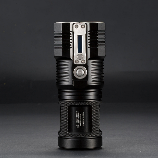Kraftfuld lommelygte med et angivet lysflow på 6000 lumen og en rækkevidde på 655 meter! Drives af fire 18650 Li-Ion-batterier. Både egnet som søgelys og til hobbybrug.