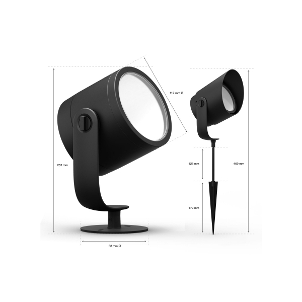 Philips Hue Lily XL er et stilfuld udendørs spotlys, der kan styres via Philips Hue-appen. Spotlampen, som frembringer skarpt og farverigt lys, er fremragende velegnet til generel belysning og stemningsbelysning i haven, for når den er tilsluttet Philips Hue smart belysningssystem, kan lampen justeres for at skabe det rette lys til situationen. Udover farveændringsfunktionen kan lyset dæmpes trinløst via Philips Hue-appen. Lily-lamper er også et glimrende valg til at belyse gangbroer i haven eller til at fremhæve yndlingsspots i haven, da den spotlignende lysstråle og aftagelige hætte giver fokuseret lys og skygger, præcis hvor du ønsker dem. Lampen kan styres via Philips Hue Bridge, så alle dens funktioner kan bruges, såsom timing, så lyset kan planlægges til at tænde for eksempel, hver gang du kommer hjem, eller når det bliver mørkt. Philips Hue-lamper fungerer problemfrit sammen med smart tilbehør som Hue-dæmperkontakten eller Hue smart-knappen, og lamperne kan selvfølgelig også tændes og slukkes med en standard lyskontakt. I dette tilfælde husker lampen den sidste lysindstilling, den havde. Angivet lysflow 1060 lumen, farvetemperatur 2000 - 6500 Kelvin. To års garanti!