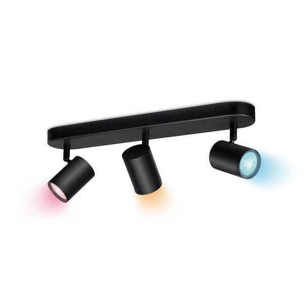 Wiz Imageo Triple RGBW er en stilfuld og moderne smart lampe med tre spotlys, der kan styres via Wiz-appen for at skabe lyst eller farverigt lys. Lampen har forudindstillede lysindstillinger, der gør hverdagen lettere og skaber forskellige stemninger, men selvfølgelig kan lampens farve justeres, og lysstyrken kan dæmpes trinløst via Wiz-appen. Imago lampen fungerer med tre udskiftelige GU10 LED-pærer (medfølger), så de kan udskiftes med andre Wiz smart-pærer, så lampens funktioner kan tilpasses til dine behov. De punktformede lysstråler kan rettes til det ønskede sted, så ud over generel belysning kan den også bruges til at fremhæve detaljer i hjemmet. Findes i sort eller hvid. Oplyst lysflow med de medfølgende LED-lamper er på 1035 lumen, farvetemperatur 2200 - 6500 Kelvin.