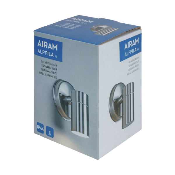 Airam Alppila 1S er en væglampe til glødelamper med GU10-fod (ikke inkluderet), der lyser lige nedad. Den er designet til belysning af terrasser eller facader, men takket være dens klassiske og stilfulde design kan den også bruges indendørs. Alppila lampen er velegnet til at fremhæve detaljerne i facaden og interiøret eller til at belyse korridorer eller passager.