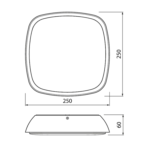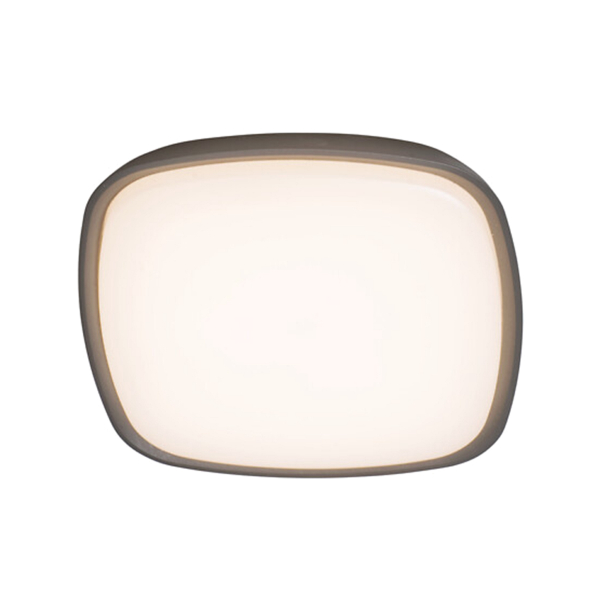 Vejrrobust loft- eller vægmonteret lampe som passer til f.eks. balkon eller carport. 1800 lm lysflow specificeret af producenten, farvetemperatur på 3000 K. Diameter 250 mm, kapslingsklasse IP44.