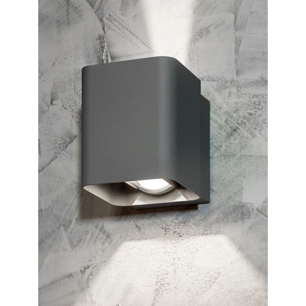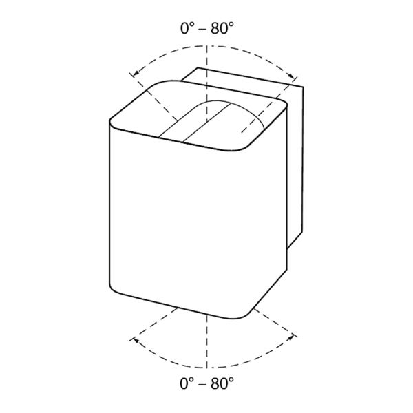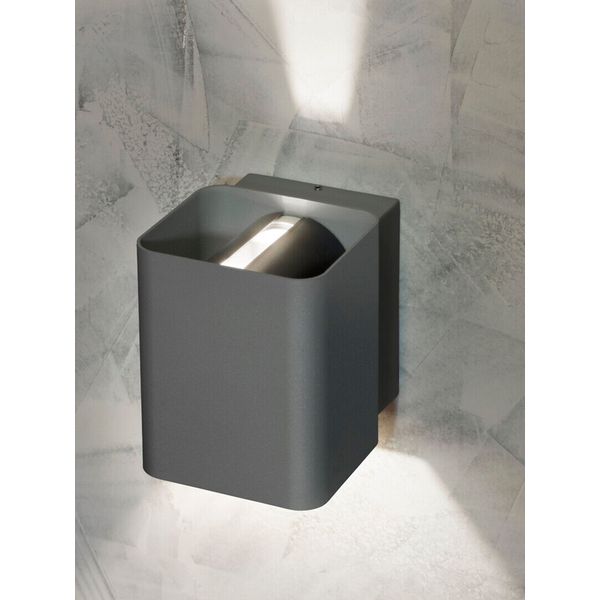 Kompakt væglampe som oplyser både opad og nedad, til f.eks. at fremhæve vægoverflader eller facader. Producenten angiver et lysflow på 860 lumen, farvetemperatur 4000K.