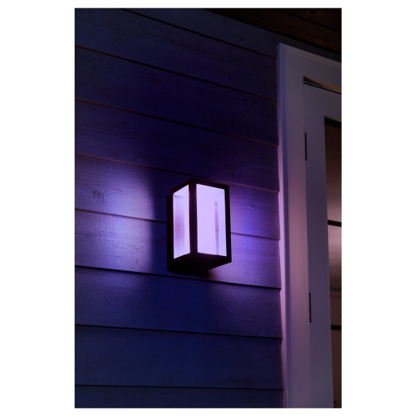 En stilfuld Philips Hue-havelampe, der giver et lyst og farverigt lys, og som kan styres via Philips Hue Bridge. Oplyst lysflow på 1180 lm, justerbar lysfarve. Kapslingsklasse IP44.