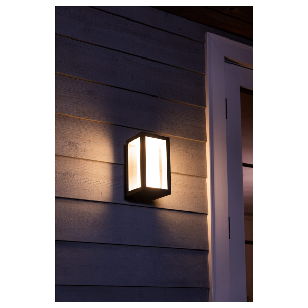 Philips Hue Impress WCA er en stilfuld udendørs væglampe, der lyser i alle retninger og kan styres via Philips Hue-appen. Impress-lampen giver et lyst og farverigt lys og er perfekt egnet til generel belysning og stemningsbelysning i gården. Når lampen er tilsluttet Philips Hue-smartbelysningssystemet, kan den justeres, så den skaber præcis det lys, du ønsker. Ud over den farveskiftende funktion kan lyset dæmpes trinløst via Philips Hue-appen. Med Impress-lampen kan du nemt belyse områder omkring husmuren, f.eks. stier og beplantninger i haven. Lampen kan styres via Philips Hue Bridge, så alle dens funktioner kan bruges, f.eks. timing, som gør det muligt at planlægge lyset til at tænde, f.eks. hver gang du kommer hjem, eller når det bliver mørkt. Philips Hue-lamperne fungerer problemfrit sammen med smart tilbehør som f.eks. Hue-dæmperen eller Hue smart-knappen, og selvfølgelig kan lamperne også tændes og slukkes med en almindelig kontakt. I så fald husker lampen den sidste lysindstilling, den havde. Oplyst lysflow på 1180 lumen, farvetemperatur 2000 - 6500 Kelvin. To års garanti!